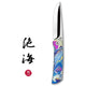 But there's more. You'll notice fine textured patterns on the handle. It not only enhance the unique texture of the design but also significantly improve the comfort and grip of the handle. The existence of these patterns poses unprecedented challenges to the coloring process, yet our craftsmen, through repeated anodizing steps, have flawlessly rendered these beautiful images on the handles. This is yet another testament to the exceptional craftsmanship of KATSU KNIVES.